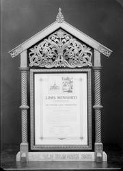 Rammen er dekorert med akantusskurd øverst og søylelignende utskjæringer på sidene og har nederst innskriften: ÆRE DEN SOM ÆRES BØR. Inne i rammen en plakat som begynner med teksten:
