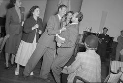 Herrene stående fra venstre: Finn Bernhoft, Erling Lindahl, Carl Habel, Kristian Hefte, Per Skift. Damene fra venstre: Turid Balke, Lill Egede-Nissen, Hilde Brenni, Mette Lange-Nielsen, Jorunn Fjærli, Randi Kramer-Johansen (Baalsrud), Esther Hagemann, Sonja Heiberg. Bak: Urban Willumsen. Sittende i front: Nils-Reinhardt Christensen. Bakfra i forgrunnen: Aud Richter.