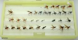 Boksen inneholder ialt 76 fluer alle ant. tørrfluer. 2 stk har ekstra lange bein ant. navn: Daddy long legg. Tørrfluene virker på den måten at de flyter oppå vannet. Giveren har skrevet ei bok som heter "Isfiske" sammen med Knut Rom, boka ble utgitt i 1972. Giverens far var en ivrig sportsfisker og er gitt tittelen "Den fullendte sportsfisker".