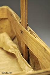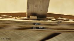 Kanten danner en form tilsvarende bunnen. På kanten er det lagt på et smalere spon på hver side som er festet med metallstift.