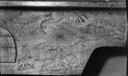 Anker, Peter (1985). Retardering eller renessanse? Om draker og rabarbrablader i 16-1700-årenes folkelige kunsthåndverk. By og bygd 30, s. 13-44. Foto s. 24.