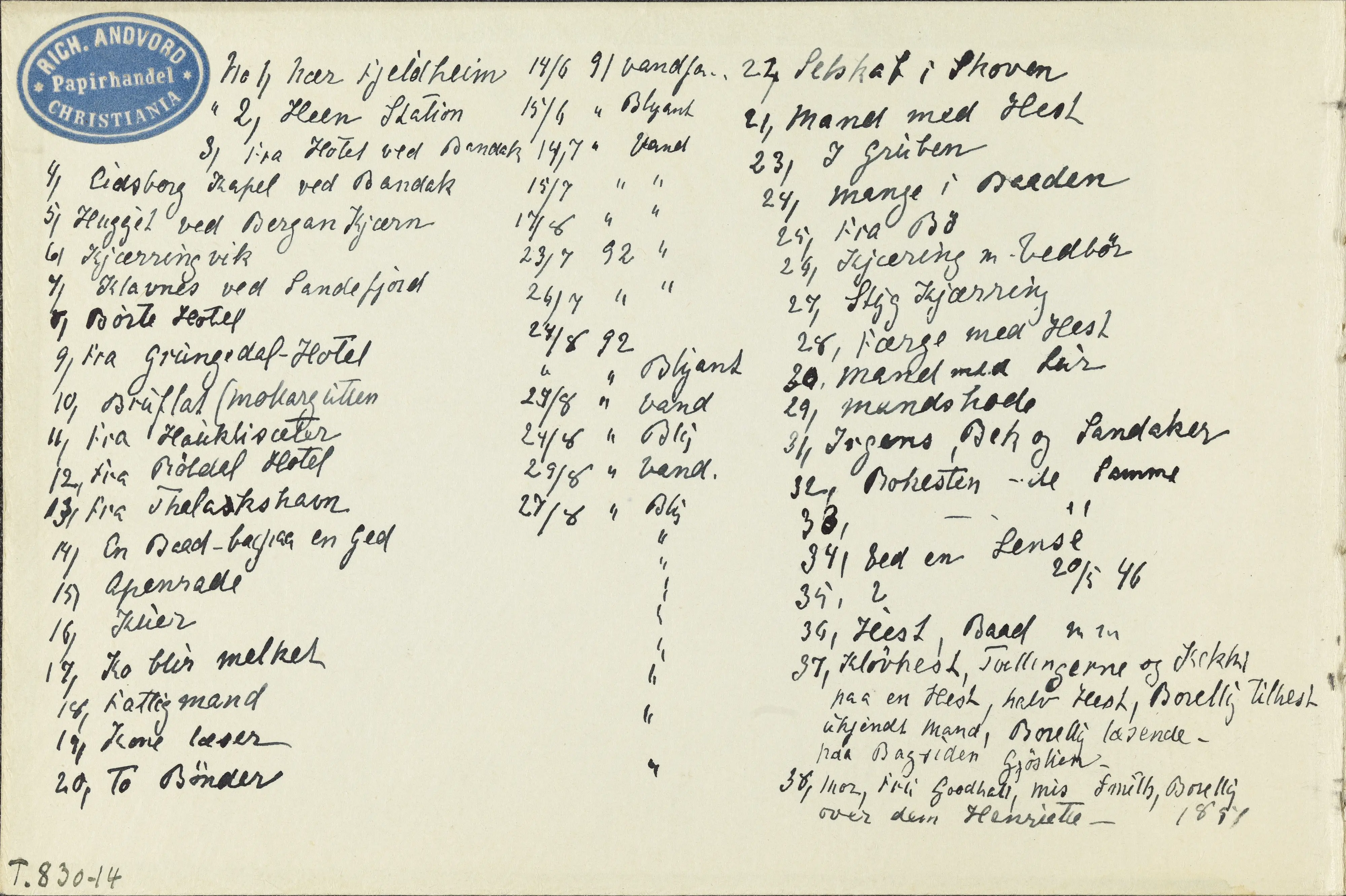 - Produksjon 1840 - 1892 (Liste med datoer notert inne i skissboken av H.A.Thaulow)