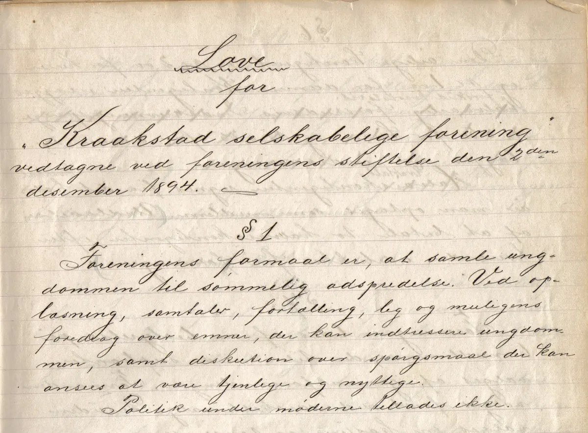 To av disse var telegrafist Olaf Ottersen og stasjonsbetjent I.A. Harlem. De hadde sett seg lei på all ”stasjonsgåingen” og tok derfor kontakt med noen av de unge i bygda. Resultatet ble Kraakstad selskabelige forening. Foreningen ble stiftet i begynnelsen av desember 1894 og fikk fort stor oppslutning. Den første uken fikk de 28 innmeldinger og i løpet av 1895 meldte ytterligere 69 seg inn. Riktignok meldte ti seg ut relativt fort, men medlemstallet var likevel imponerende høyt.