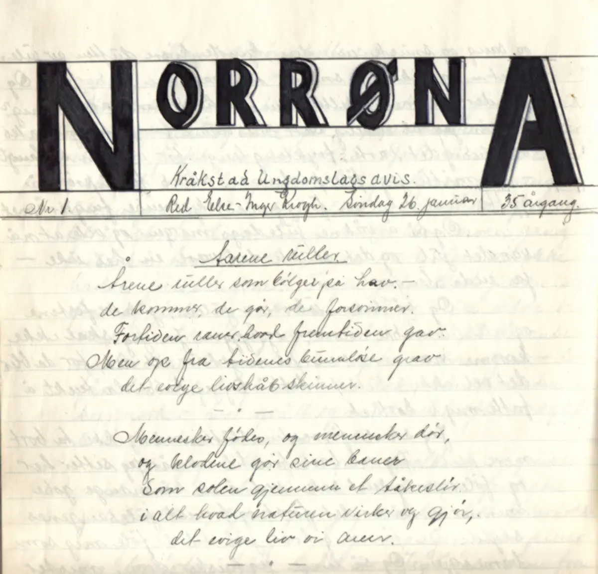 Hva dreiv så ungdomslaget med? Et referat fra lagsmøte 27.mars 1938 kan si noe om Lagets aktiviteter: Søndag 27.mars hadde laget møte. Formannen ønsket velkommen ved halv otte tiden, og så sang vi ”No livnar det i lundar.” Vi hadde i anledning det påtenkte scenekurs besøk av Dosent Trummler fra Mysen, som på sin festlige måte spilte noen stykker for oss og plystret noen små sanger til eget akopagnement. Derefter snakket vi litt frem og tilbake om talekor, og Trummler gav oss en liten forklaring på hva det egentlig er, og så lot han oss prøve selv ved å lese en sang i kor. Før vi fikk mat sang vi så ”Det går et stille tog.” Da vi hadde spist og koset oss en times tid, samlet vi oss i salen igjen og Trummler fremsa: ”morgenen før slaget på Stiklestad,” en scene av Arnljot Gelline, av Bjørnson. Og så leste han et skuespill som han hadde skrevet selv, ”Te i Shanghai.” Referat og avis ble så oplest av henholdsvis Maren Kvilesjø, og Gunhild Tronaas. Scenekurset ble så drøftet litt igjen og flere medlemmer blev optegnet. Det første møte blev fastsatt til torsdag efter påske. Vi hadde utlodning som innbragte kr. 14. Efter mye bråk fikk vi da leika litt. Og vi dannet broderkjede og sang: ”Syng kun i din ungdoms vår” (Referent: Per Tronaas).
