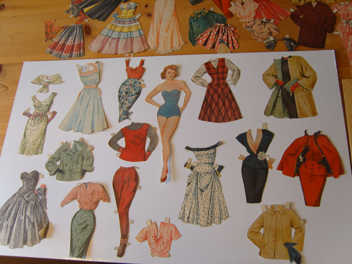 Utklyppsdokker i ukebladet Hjemmet. Slik unødvendig luksus som ukeblad vart ikkje kjøpt heime, men mormor kom frå ein anna landsdel. Ho abonnerte og den som fekk gleda av dokkene var eg, (sjølv om eg var «stor» vorten). Den fyrste hadde til og med same namnet som eg, og garderoben vart rikholdig. Ingen paprdokker hadde så mange kle.