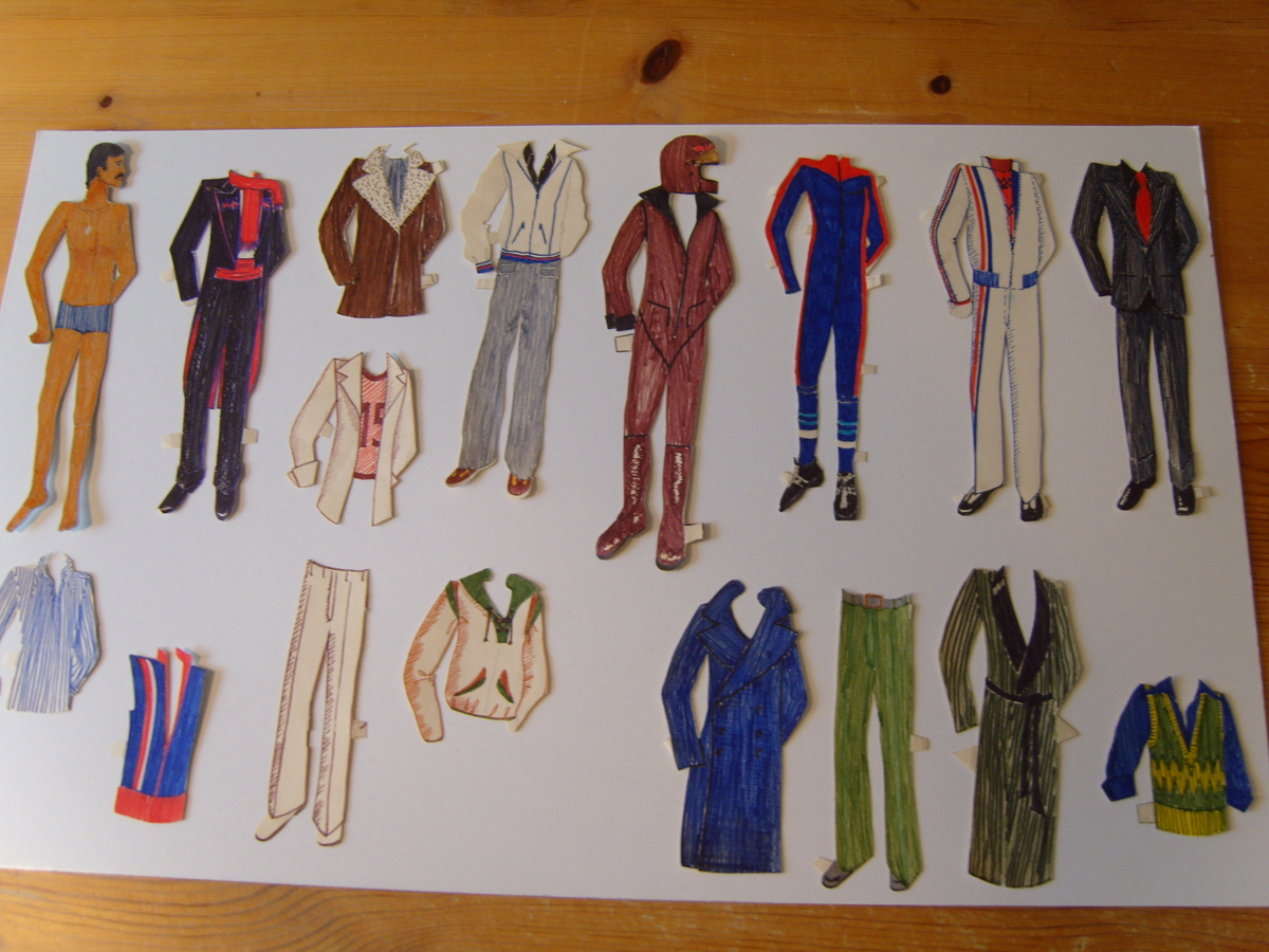 Ein av dei er særleg stilig. Modellen var kjærasten til moster, og han som teikna den for syskenborna sine, kunne sine ting. Til og med skitrikoten frå langrennstida til storbroren kom på papiret, ilag med tidstypiske mannskle frå slutten av -70-talet.