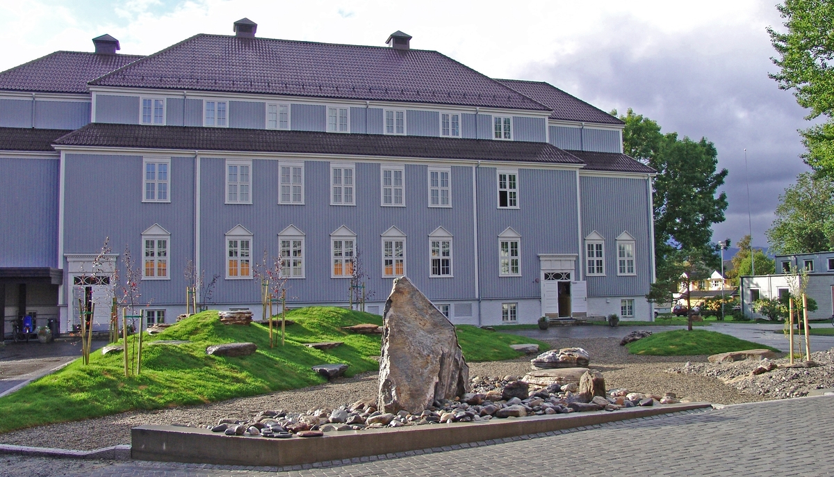 Parkanlegget framfor hovudbygget har Andreas Heuch forma dels av kuperte grasbakkar med store, flate steinar som fungerer som benkar, dels av felt med grus og stein. Det er også planta furu, raudbjørk, pil og rosebusk.