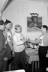 Innskrift på negativkonvolutt: "Divisjonsmusikken, skirenn på Lian, foto for Avisene ". - 1954