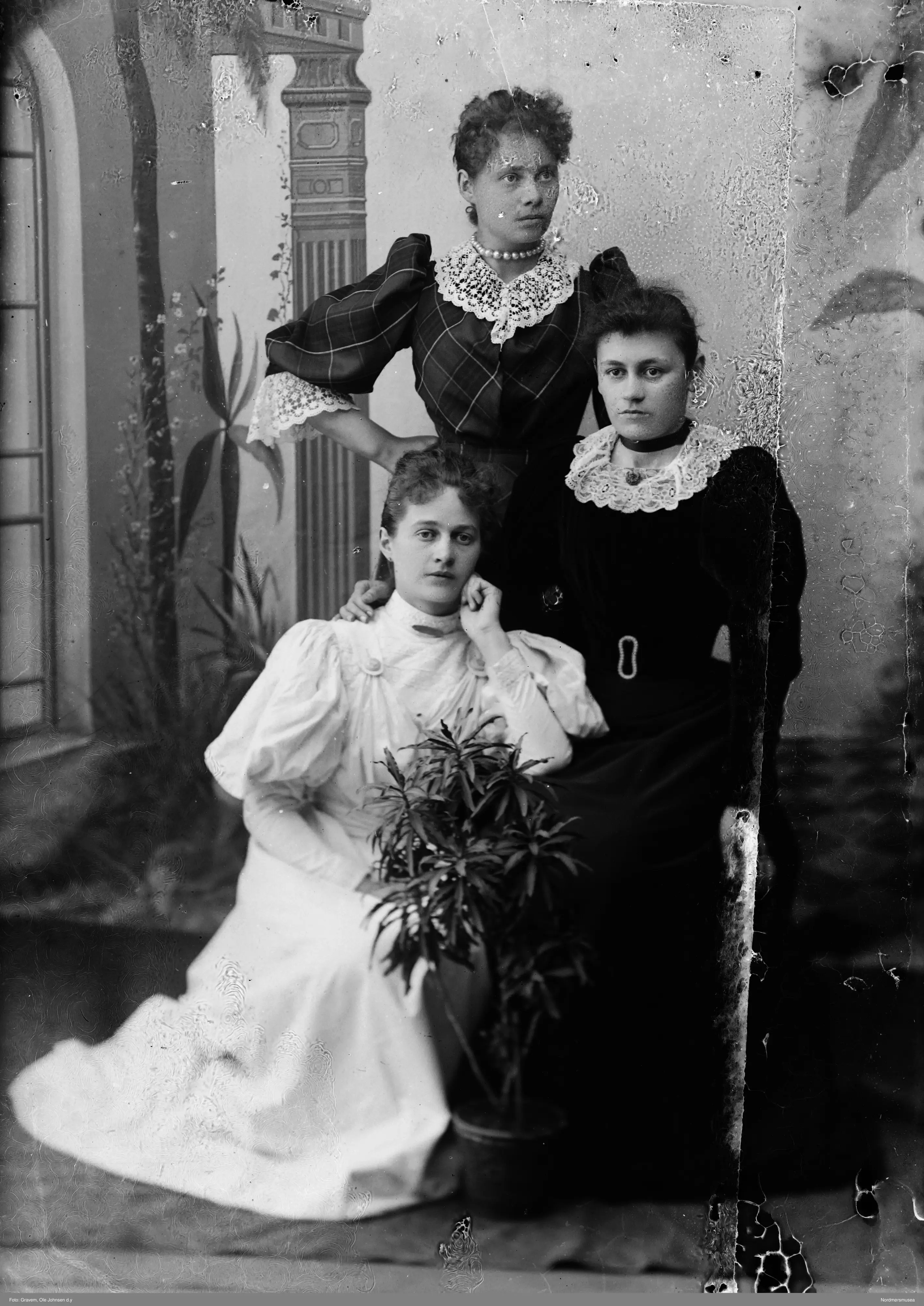 Fra glassplatesamlingen tilhørende Sunndal museumslag etter de to fotografene Ole J. Gravem. Ole J. Gravem d.e. fotograferte fram til 1900 da han døde, med opphold i perioden 1889-1895 da oppholdt seg i Brønnøy i Nordland og var fotograf der. Bilder i samlingen tatt før 1900 er hans verk mens bilder fra 1900-1906 er tatt av Ole J. Gravem d.y som tok over etter sin onkel Ole J. Gravem d.e. De fleste fotoene er udarte og det er derfor vanskelig i mange tilfeller å vite hvem av dem som har tatt fotoet. I noen tilfeller er det mer sikkert hvis motivet er enkelt å tidfeste. Glassplatene har vært arkivert etter et system og nummerert, men dette systemet er gått tapt og ikke alle har nummer fra fotgrafenes side. Ut fra nummereringen er det flere tusen bilder vi ikke har negativene til. En del av disse finnes det positiver til rundt omkring. Ole J. Gravem d.y emigrerte til Amerika og fortsatte som fotograf der. Han sendte hjem bilder av atelieret sitt og det ser ut som han der har oppgradert utstyret en del.