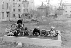 Innskrift på negativkonvolutt: "Lekeplass m/barn fot. På Paulienlund. Fot. for Arb Avisa". - 1952