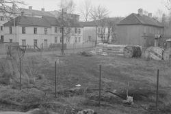 Alle 4 bildene er brukt i Arbeider-Avisa 01.11.1952. Bilde 3 og 4 er satt sammen med følgende bildetekst: "Et blikk over endel av tomta sett fra første etasje i Paulinebygget. det ser jo ganske ryddig ut der nå, men når plassen blir fylt med det en ser i bakgrunnen, murstein og annet, blir det ikke noe trivelig syn fra vinduene. Som en ser er mange av stolpene til gjerdet alt kommet på plass".