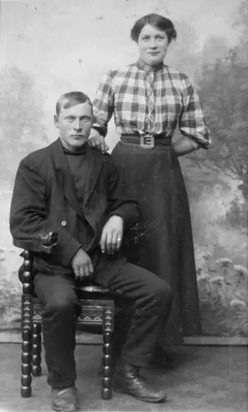 Visittkortportrett av en mann og en kvinne. Fotograf Emilie Henriksen.