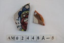 Funnet under en befaring i gruvene ved Kåfjord kobberverk i 1995. Tilhører samme skål som det året etter ble funnet en større bit av (jfr. AM.02446).