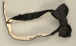 B: Bukse, svart klede, silkeripsbånd i sidene. L. 103 cm, Vidde nede 24 cm