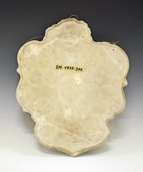 Porselensplatte: "Den norske Nordpols-expedition 1893-1896", laget på Porsgrunds Porselænsfabrik. Platten har hvit bunn og er formet som et løvblad, kantet i blått og gull. Øverst det norske riksvåpen, ellers bilder av alle polfarerne, med Fritjof Nansen i midten. Rundt dette bildet laurbærkrans i grønt med sløyfe i de norske farger. I alt 13 personer. Nederst en del av en globus med tegning av polarskuta "Fram" på Nordpolen.