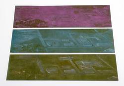 -3 stk. identiske klisjeer men i ulike kulører. De viser trolig et motiv fra Felleskjøpet. De var pakket med en lapp der det stod F.K.