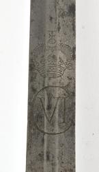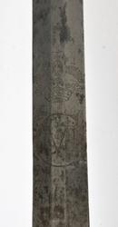 Rett tveegget klinge med 6 kantet tverrsnitt. Klingen er merket med kronet Christan 6 monogram som C VI