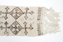 Er usikker på bruken av tekstilen. Kan ha vore sendingsplagg, hovudklut eller bårekross?
