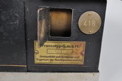 Maskin til bruk ved frankering av post. Maskin for bruk av frankeringskort med fast rammebeløp.