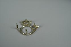 Posthornmerke i sølvfarget metall, festet på vesker og sekker brukt i posttjenesten.